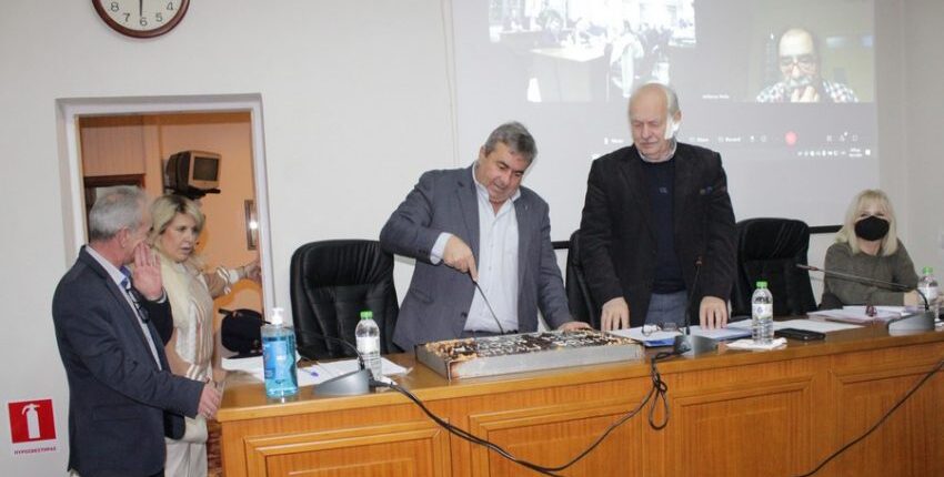 Στο ξεκίνημα της Συνεδρίασης κόπηκε η καθιερωμένη Βασιλόπιτα για το Δημοτικό Συμβούλιο.