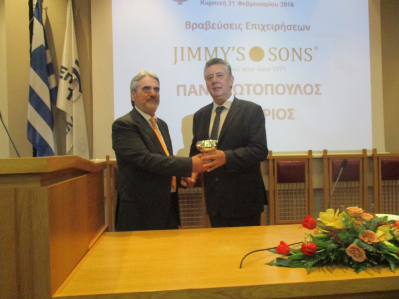 Ακολούθησε και η βράβευση του ιδιοκτήτη του φαστ φουντ jimmy’s, Δημ. Παπαγιωτόπουλου που δραστηριοποιείται με επιτυχία στο χώρο της εστίασης από το 1977 καθώς και για την πολύχρονη προσφορά του στο συνδικαλισμό που ξεκίνησε από το 1992 μέχρι σήμερα μέσα από το Σωματείο Φαστ Φούντ Τρικάλων την Πανελλήνια Ομοσπονδία Εστιατόρων και Συναφών Επαγγελμάτων και την Ομοσπονδία ΕΒΕ Ν. Τρικάλων.
