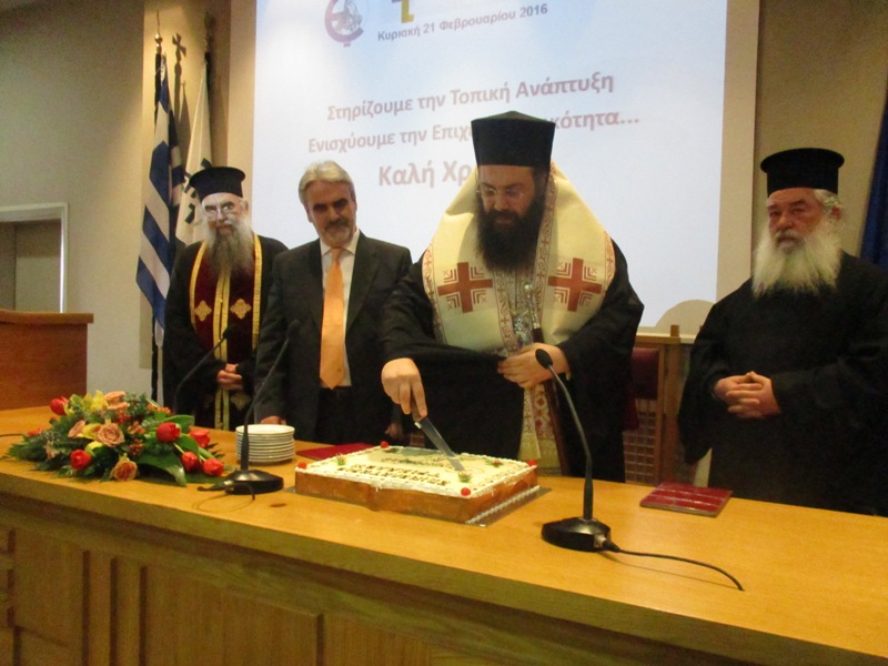 Την πίτα ευλόγησε ο Σεβασμιώτατος Μητροπολίτης Τρίκκης και Σταγών κ. Χρυσόστομος, ενώ παραβρέθηκαν οι εκπρόσωποι των παραγωγικών και επαγγελματικών τάξεων.