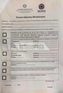 Ενα έντυπο θα καλούνται να συμπληρώνουν οι πολίτες, οι οποίοι επιθυμούν να μετακινηθούν, στο πλαίσιο των νέων μέτρων περιορισμού του κορωνοϊού.