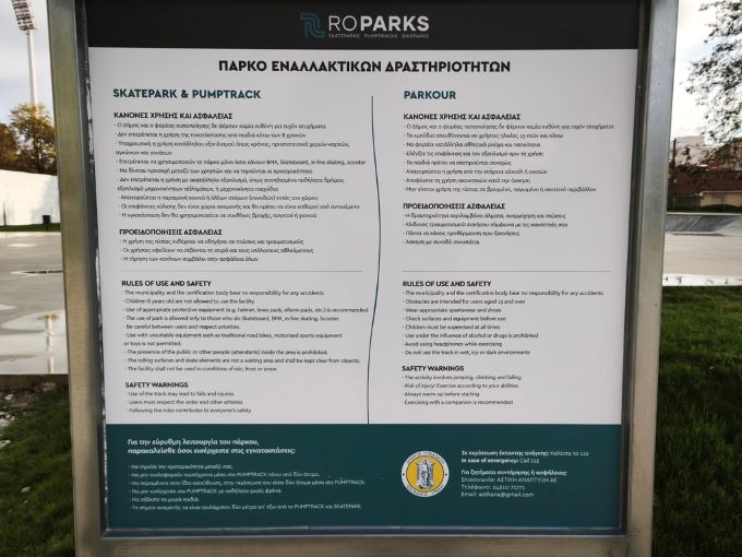 πάρκο για παρκούρ και ειδική πίστα για ποδήλατα pumptrack.