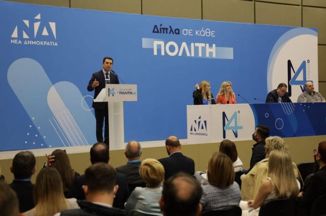 βήμα του 14ου συνεδρίου της ΝΔ, ο Υπουργός Περιβάλλοντος και Ενέργειας,