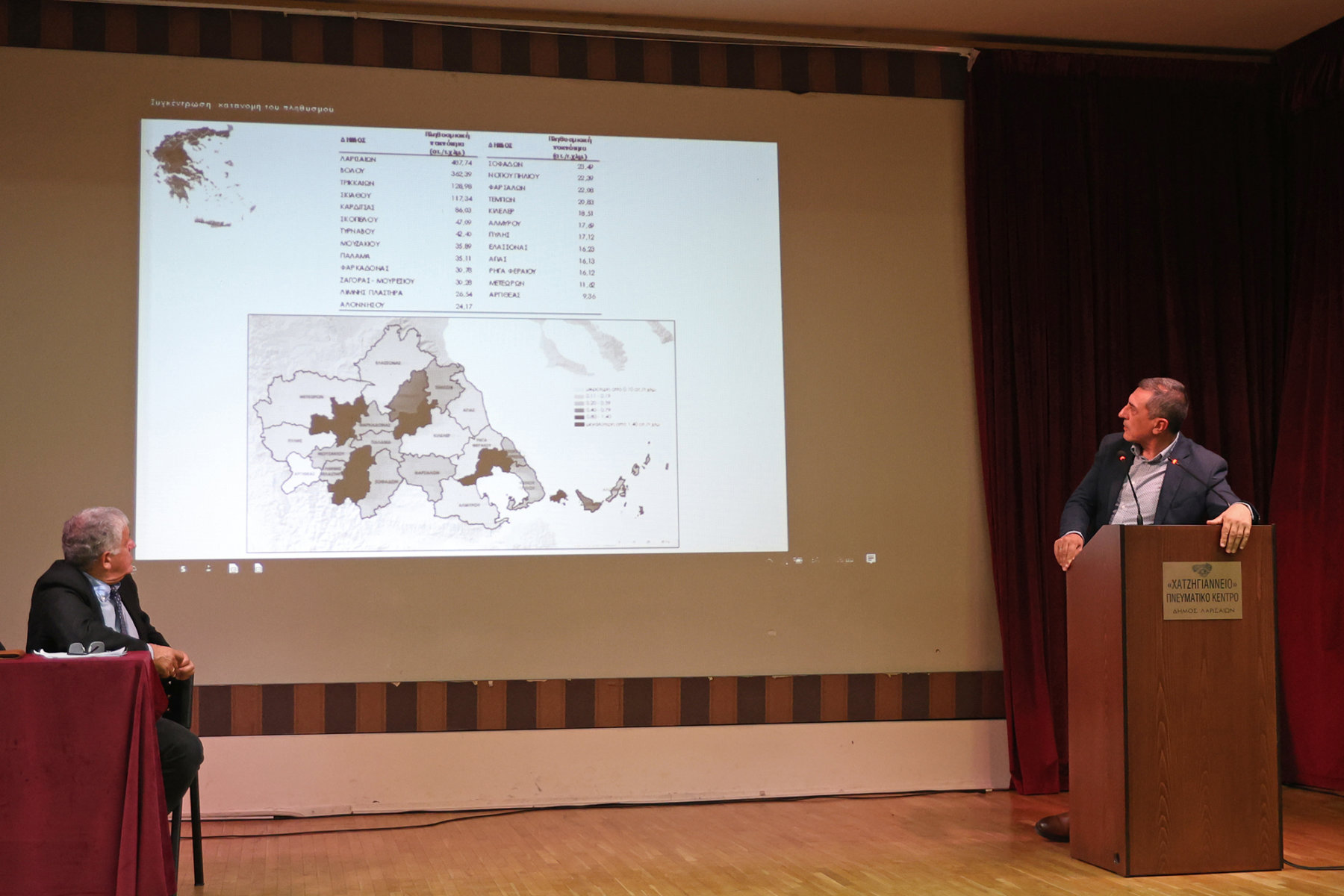 Στην ομιλία του ο Περιφερειάρχης παρουσίασε αναλυτικά στοιχεία για την δημογραφική ταυτότητα της Θεσσαλίας, συνοψίζοντας τα βασικά χαρακτηριστικά της, αλλά και τις προκλήσεις που τίθενται, ενώ δεν παρέλειψε ν’ αναφέρει πως η πολιτεία, η αυτοδιοίκηση και οι αντίστοιχοι αρμόδιοι φορείς οφείλουν να συνεργαστούν για να τις αντιμετωπίσουν. Αναφέρθηκε ακόμη και στην ανισοκατανομή του πληθυσμού και στην υπερσυγκέντρωσή του σε μεγάλες πόλεις, αστικά κέντρα και κυρίως σε πεδινές περιοχές, εν’ αντιθέση με μικρότερες πόλεις, χωριά, ημιορεινές και ορεινές περιοχές.