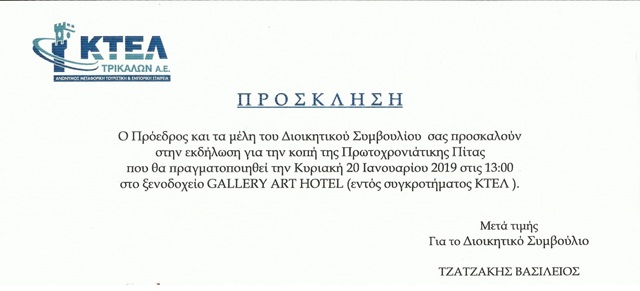 trikaladay.gr / Τοπικά / Κόβει την πρωτοχρονιάτικη πίτα του το Υπεραστικό ΚΤΕΛ Τρικάλων