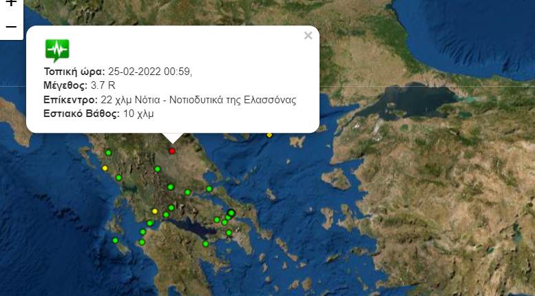 Σεισμική δόνηση σημειώθηκε τα ξημερώματα της Παρασκευής 25/2 . η οποία έγινε αισθητή σε περιοχές της Π.Ε Τρικάλων «ταρακούνησε» τη Λάρισα τα ξημερώματα της Παρασκευής 25/2 .