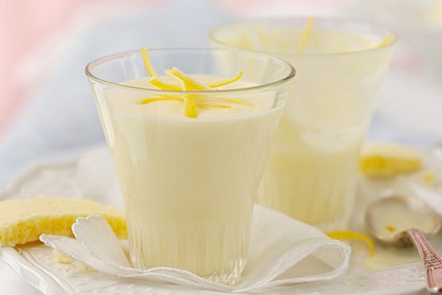 - Χτυπάμε σε ένα μπολ με το μίξερ χειρός το γιαούρτι, το ζαχαρούχο γάλα, τον χυμό και το ξύσμα του λεμονιού.