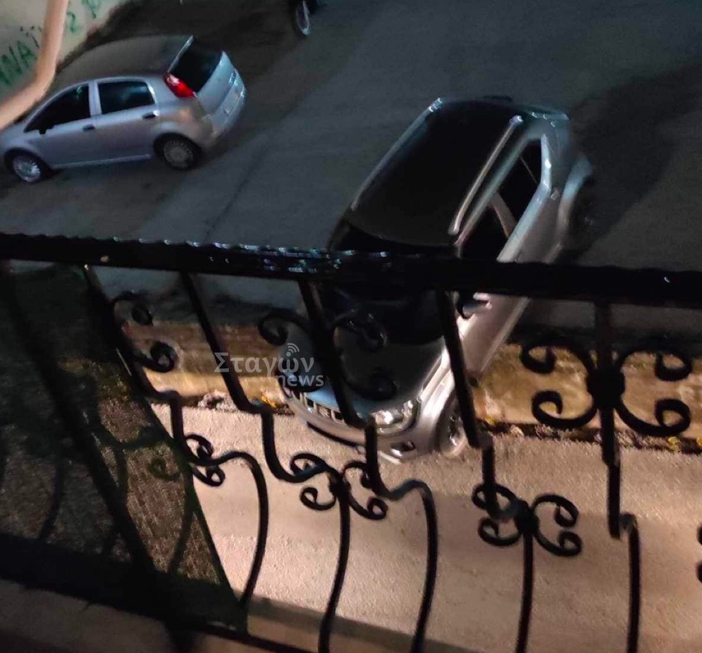 Ένα ι.χ. αυτοκίνητο «Κρεμάστηκε» πριν από λίγο στο πάρκινγκ απέναντι από την πλατεία Πλατάνου Καλαπάκας.