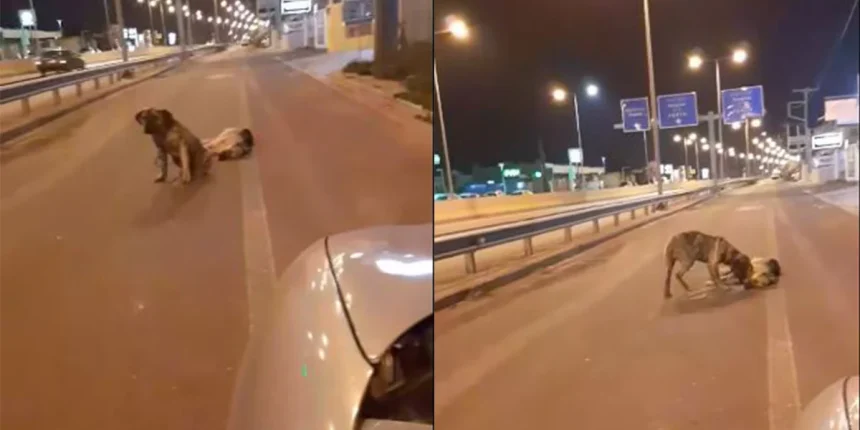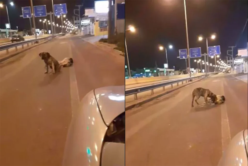 Στις εικόνες που κατέγραψε η αθλήτρια του βόλεϊ Νίκη Μανωλάκη και οι οποίες κάνουν τον γύρο του διαδικτύου, φαίνεται ένα νεκρό σκυλάκι στη μέση του δρόμου. Η πιθανότερη εκδοχή είναι να είχε χτυπηθεί από διερχόμενο αυτοκίνητο. Ο τετράποδος φίλος του στέκεται ακριβώς δίπλα του και αρνείται να εγκαταλείψει το σημείο.