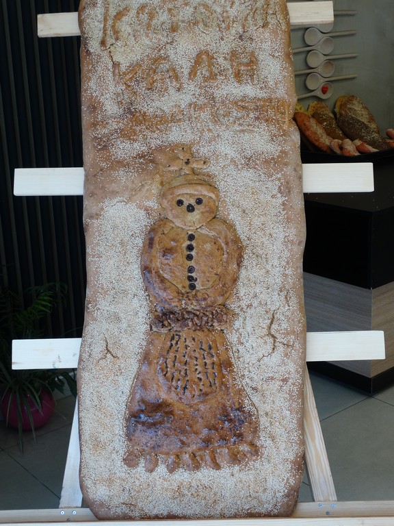 Πιστό στις παραδόσεις του τόπου παραμένει και φέτος το αρτοποιείο-ζαχαροπλαστείο «Κωτούζας» στα Τρίκαλα. Εναρμονισμένο με το πνεύμα των ημερών παρασκεύασε την Κυρά Σαρακοστή σε λαγάνα ύψους 1.5 μ.