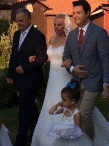 Μετά το μυστήριο του γάμου που τελέστηκε από τον Μητροπολίτη Τρίκκης και Σταγών Χρυσόστομο ακολούθησε και η βάφτιση του μικρού Παναγιώτη γιου του ζεύγους των νεονύμφων.