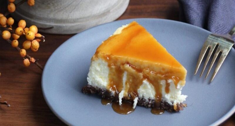 - Όταν κρυώσει, το περιχύνετε πάνω στη κρέμα, στο κρύο πλέον γλυκό μας, το ισιώνετε με μια σπάτουλα σιλικόνης και το ξαναβάζετε στο ψυγείο να κρυώσει και το γλάσο καραμέλας.