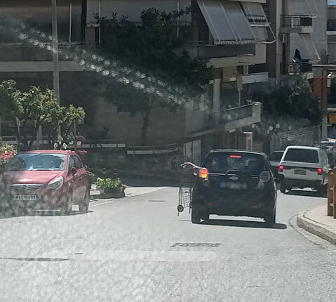 trikaladay.gr / Ελλάδα / Λαμία: Ασυνείδητος οδηγός με το καροτσάκι της λαϊκής αγοράς στο αριστερό χέρι.. και το δεξί στο τιμόνι!!! (video)