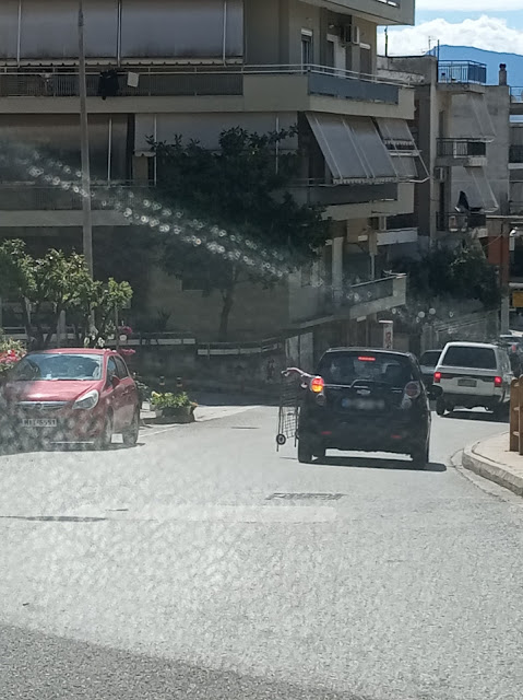 trikaladay.gr / Ελλάδα / Λαμία: Ασυνείδητος οδηγός με το καροτσάκι της λαϊκής αγοράς στο αριστερό χέρι.. και το δεξί στο τιμόνι!!! (video)