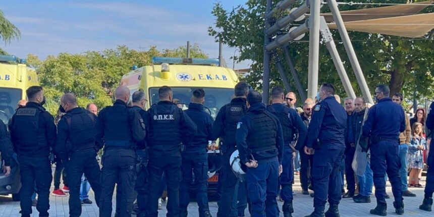Στο σημείο βρίσκονται από νωρίς το πρωί ισχυρές αστυνομικές δυνάμεις προκειμένου να αποφευχθούν επεισόδια, καθώς ήταν γνωστό εδώ και μέρες πως μέλη του αντιεμβολιαστικού κινήματος που αντιδρούν στην απόφαση του Μητροπολίτη Λαρίσης, θα συγκεντρώνονταν για να διαμαρτυρηθούν.