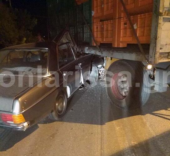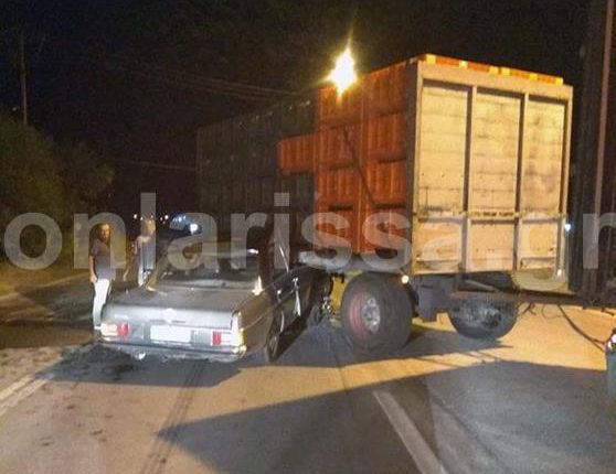 Το τροχαίο ατύχημα σημειώθηκε λίγο μετά τις 21.00 το βράδυ της Πέμπτης (24-08-2017) στη Λάρισα και συγκεκριμένα στο δρόμο προς Συκούριο, λίγο μετά το πρώην εργοστάσιο Ζάχαρης. Σύμφωνα με πληροφορίες, κάτω από άγνωστες μέχρι στιγμής συνθήκες, συγκρούστηκαν φορτηγό με Ι.Χ. αυτοκίνητο με αποτέλεσμα να τραυματιστεί και να εγκλωβιστεί ο οδηγός του Ι.Χ. αφού το όχημά του «σφήνωσε» κάτω από την καρότσα του βαρέως οχήματος.