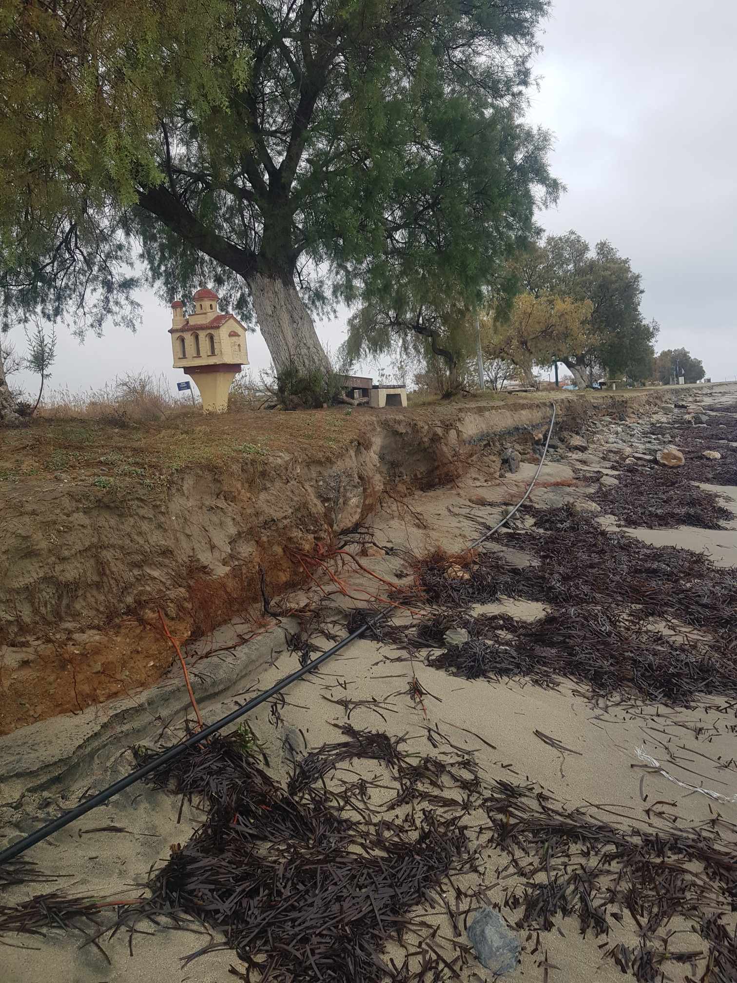 Η θάλασσα “τρώει” την παραλία με αποτέλεσμα να φτάνει στον δρόμο και να υπάρχει κίνδυνος να κοπεί και να έχουμε πλημμυρικά φαινόμενα και να κινδυνέψουν σπίτια !