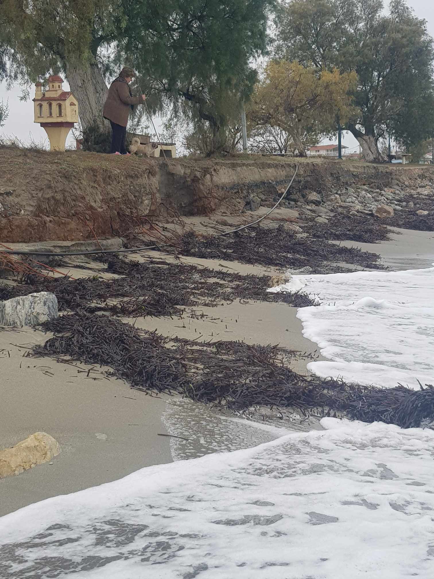 «Κάθε χρόνο κ χειρότερα! Κάθε χρόνο αντιμετωπίζουμε το ίδιο φαινόμενο. Η θάλασσα βγαίνει σε όλο το μήκος της παραλίας και ιδιαίτερα στην συνοικία Καράβια, στην οδό Ποσειδώνα το πρόβλημα παίρνει διαστάσεις!