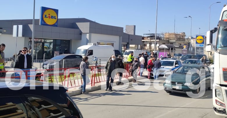 Εμβρόντητοι διερχόμενοι στην οδό Βόλου, έξω από το Lidl, κοντά στον κυκλικό κόμβο με τη λεωφόρο Καραμανλή, έβλεπαν δύο άντρες να διαπληκτίζονται δίπλα σε στα οχήματά τους που είχαν συγκρουστεί νωρίτερα.