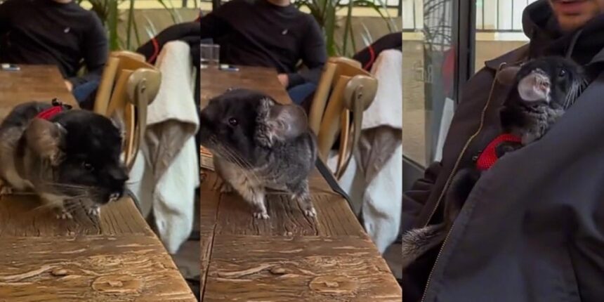 Το παράδειγμα αυτή τη φορά έδωσε ένας Λαρισαίος που δε δίστασε να πιει τον καφέ του σε κεντρικό μαγαζί της πόλης παρέα με το μικρό του τσιντσιλά. Κρατώντας το με ένα λουράκι για να μη διαφύγει έγινε επίκεντρο του ενδιαφέροντος, με τα γύρω τραπέζια να χαζεύουν το ζωάκι που από το φόβο του δεν «ξεκολλούσε» από το αφεντικό του!