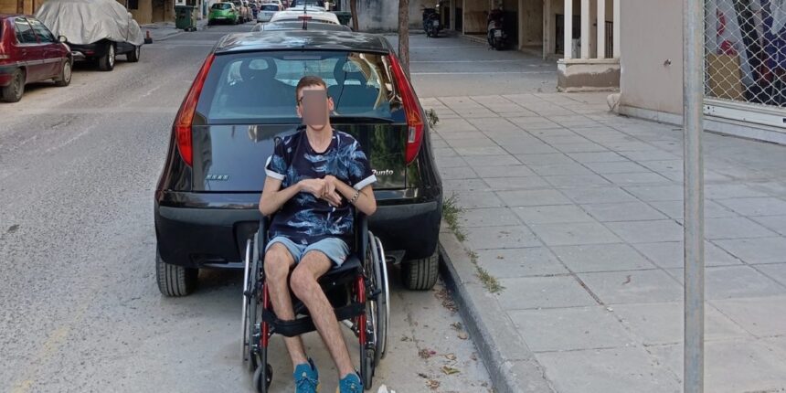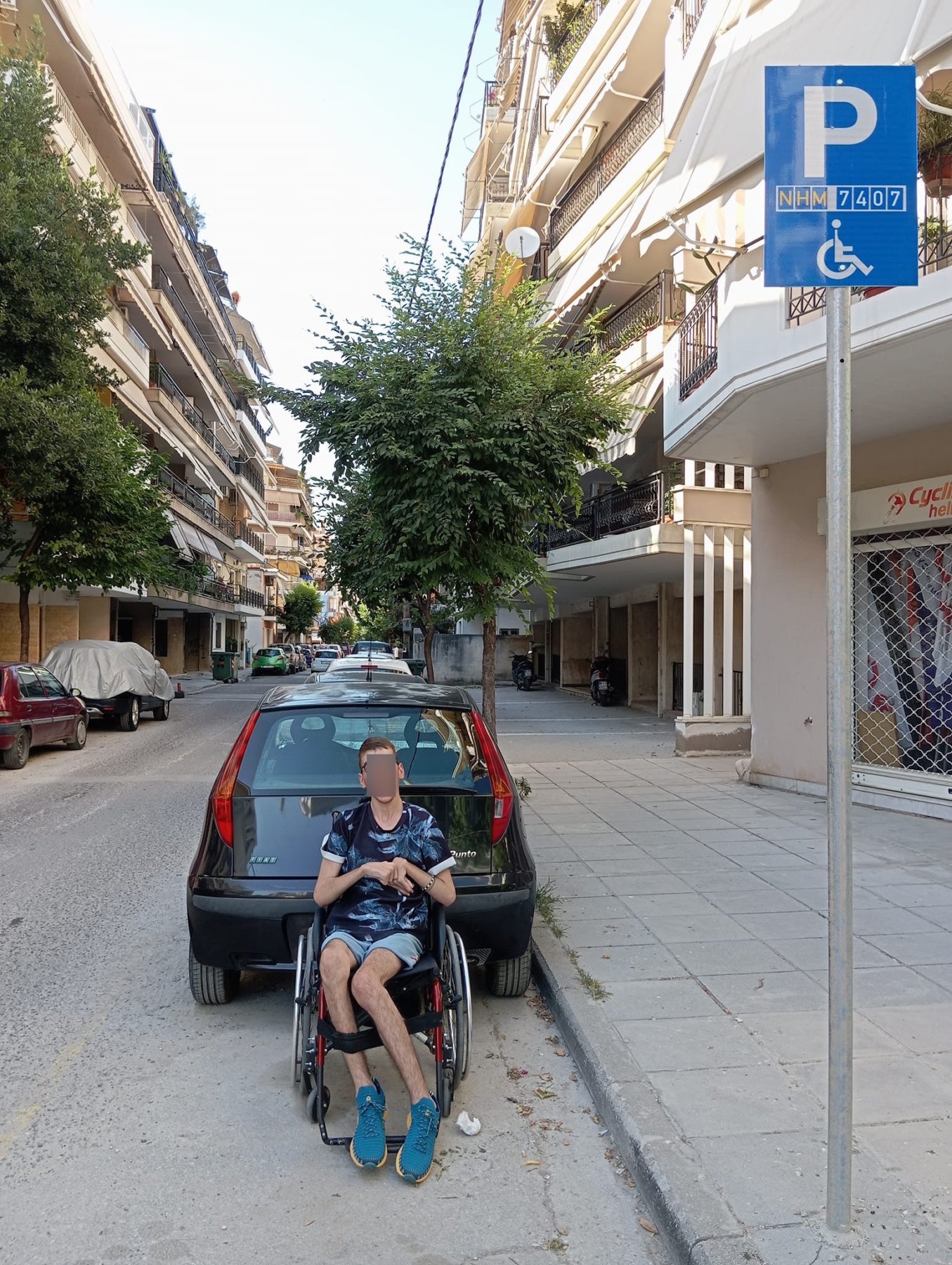 Αγανακτισμένος ο συγγενής του συμπολίτη μας με κινητικά προβλήματα έβγαλε μία φωτογραφία με τον νεαρό να βρίσκεται μπροστά από το πάρκινγκ και το όχημα που όπως καταγγέλλεται, μένει εκεί για δύο ημέρες τώρα. Η εικόνα τσακίζει κόκαλα…