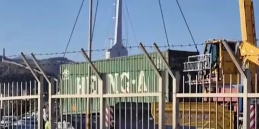 Με την άφιξη του πλοίου ξεκίνησε η εκφόρτωση των κοντέινερ σε 18 νταλίκες του επικίνδυνου φορτίου βάρους 350 τόνων, με πλήρη απουσία μέτρων ασφαλείας και χωρίς να υπάρχει στο λιμάνι καμία Αρχή.