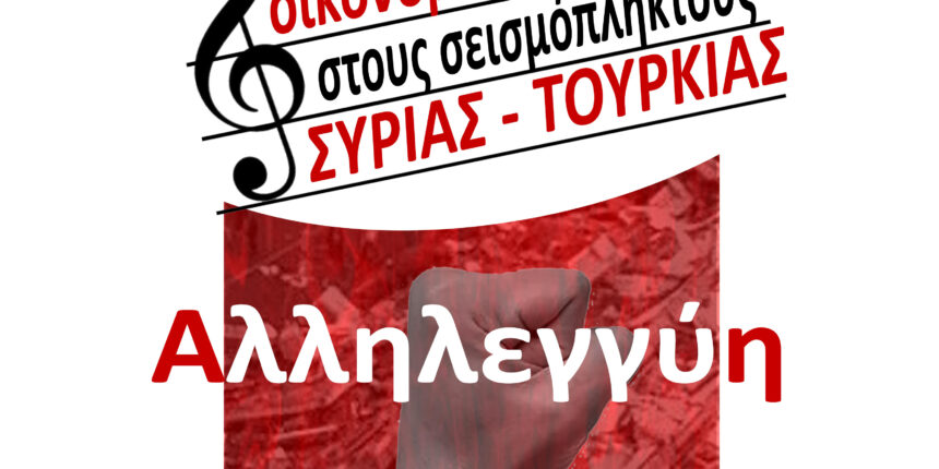 Η Λέσχη Εργασίας, Αλληλεγγύης και Πολιτισμού σας προσκαλεί την Κυριακή της Αποκριάς, τις 26 Φεβρουαρίου στη 1:30 μ.μ. στην Κληματαριά, για να περάσουμε μαζί, ένα μεσημέρι με ζωντανή ρεμπέτικη μουσική. Μια μέρα που συνδέεται άμεσα με τη συλλογική διασκέδαση και τη χαρά, θα επιδιώξουμε να τη συνδέσουμε με την αλληλεγγύη των ανθρώπων και τη φιλία των λαών. Για τον σκοπό αυτό, τα έσοδα της εκδήλωσης, θα προσφερθούν στους σεισμόπληκτους της Τουρκίας και της Συρίας.