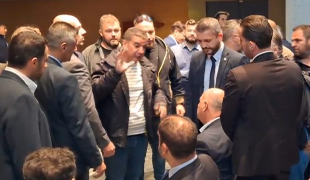Οι αγρότες διέκοψαν τη διαδικασία παρουσίασης, ζητώντας ο Υπουργός να συναντήσει το σύνολο των διαμαρτυρόμενων στο προαύλιο. Ο Υπουργός δέχθηκε να συνομιλήσει μόνο με αντιπροσωπεία τους στον 4ο όροφο, στο γραφείο του Αντιπεριφερειάρχη Βοιωτίας, Γιώργου Ντασιώτη.