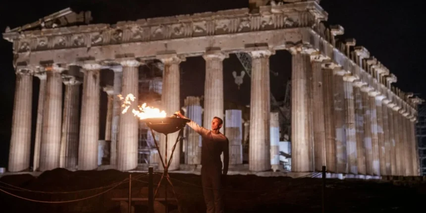 Τη βράδυ της Παρασκευής, τη φλόγα στο βωμό της Ακρόπολης άναψε ο Ολυμπιονίκης Περικλής Ιακωβάκης, έχοντας παραλάβει το Φως από τον πρωταθλητή της κολύμβησης Ανδρέα Βαζαίο.