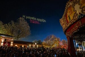 Οταν τα πάνω από 200 drones σχημάτισαν στον τρικαλινό ουρανό τον Πίτερ Παν και τον Αη