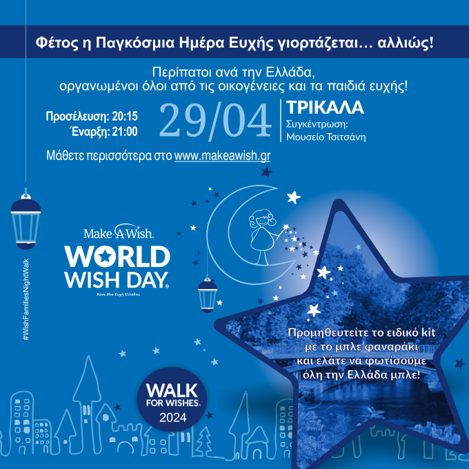 καθιερωμένο ετήσιο περίπατο, Walk for Wishes 2024, σε πολλές πόλεις και στα Τρίκαλα.