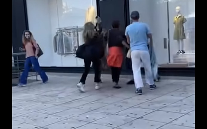 Ο νεαρός που συνόδευε τη γυναίκα προσπάθησε να τη συγκρατήσει, αλλά δεν τα κατάφερε, με αποτέλεσμα οι δύο γυναίκες να πιαστούν στα χέρια.