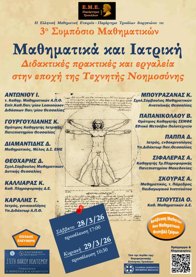 Μαθηματικά, Ιατρική και Τεχνητή Νοημοσύνη στο 3ο Συμπόσιο Μαθηματικών στα Τρίκαλα