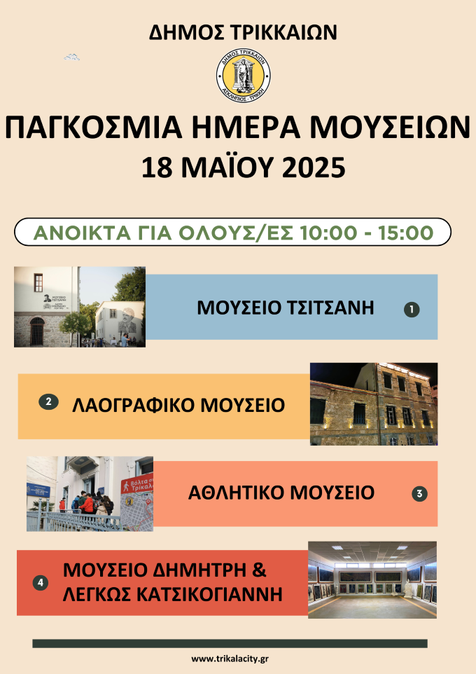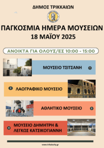 Τη Διεθνή Ημέρα Μουσείων τιμά ο Δήμος Τρικκαίων. Την Κυριακή 18 Μαΐου 2025, 4
