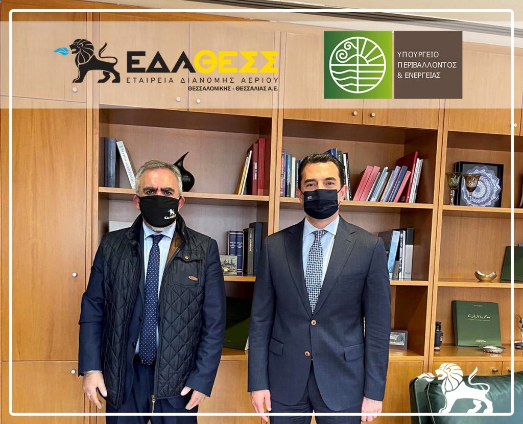 Συνάντηση πραγματοποιήθηκε μεταξύ του νέου Υπουργού Περιβάλλοντος και Ενέργειας, κ. Κωνσταντίνου Σκρέκα και του Γενικού Διευθυντή της ΕΔΑ ΘΕΣΣ, κ. Λεωνίδα Μπακούρα, στο επίκεντρο της οποία τέθηκε ο καταλυτικός ρόλος του φυσικού αερίου στη διαμόρφωση του ενεργειακού τοπίου.