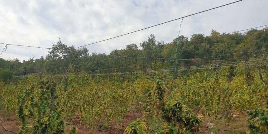 Έτσι, έπειτα από την διακριτική παρακολούθηση από αστυνομικούς, εντοπίστηκε την Τετάρτη (18/09), σε ορεινό όγκο στο Δημοτικό Διαμέρισμα Γαβριανής, Δήμου Αλμυρού, Μαγνησίας, πλησίον του Καταφυγίου Άγριας Ζωής Ταράτσα -Αετοφωλιά, ειδικά διαμορφωμένος χώρος, επτά επιπέδων, που ενώνονταν μεταξύ τους με αυτοσχέδια, μεγάλου μήκους, μονοπάτια, στον οποίο καλλιεργούνταν δενδρύλλια κάνναβης. Στους χώρους της φυτείας παρεχόταν φυσική κάλυψη από την υπάρχουσα πυκνή δασώδη βλάστηση, αλλά και ασφάλεια από το απομακρυσμένο και δύσβατο της περιοχής.