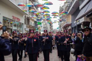 παρέλαση μέσα από το κέντρο της πόλης των Τρικάλων σε ρυθμούς και με ήχους