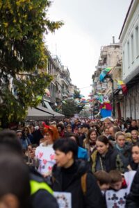 εκατοντάδες μέλη των ομάδων από το Πνευματικό κέντρο των Τρικάλων. Με μπροστάρισσα