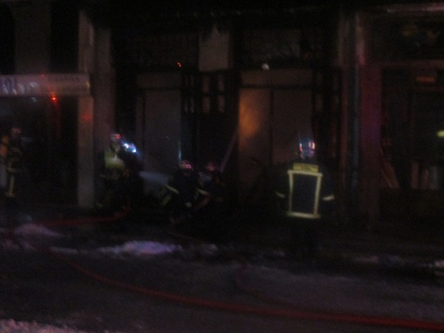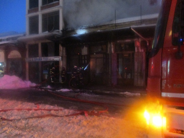 Η φωτιά άγνωστο πως προκλήθηκε σημειώθηκε στο κατάστημα σιδηρικών Χρόνη δίπλα από το κατάστημα επίσης εμπορίας σιδηρικών Γκαντέλου.