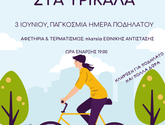 Την Παγκόσμια Ημέρα Ποδηλάτου γιορτάζει με μεγάλη ποδηλατοβόλτα ο Δήμος Τρικκαίων. Στην πόλη με τα πάνω από 40.000 ποδήλατα και τους συνεχώς αυξανόμενους ποδηλατοδρόμους, οι ποδηλάτες και οι ποδηλάτισσες συγκεντρώνονται την Τρίτη 3 Ιουνίου 2025, ανήμερα της Παγκόσμιας Ημέρας, στις 19:00, στην πλατεία Εθνικής Αντίστασης. Από εκεί θα ξεκινήσει μια όμορφη βόλτα, με ασφάλεια και προστασία για όλες τις ηλικίες. Η διαδρομή είναι 10 χιλιόμετρα και θα ακολουθήσει την πορεία: Πλατεία Εθνικής Αντίστασης – οδός Ιακωβάκη – (δεξιά) γέφυρα Γκίκα – αριστερά αμέσως μετά τη γέφυρα – πίσω από το μουσείο Τσιτσάνη – (ευθεία) οδός Δαβάκη – αριστερά στην οδό Τερτίπη – δεξιά στην οδό Καλυψούς – αριστερά γέφυρα Αρριανού – δεξιά οδός Λέσβου – ευθεία στη γέφυρα Καρδίτσης απέναντι στην οδό Σκοπέλου – ευθεία προς Καρυές – Φλαμούλι – μετά τις γραμμές δεξιά και ευθεία στην οδό Λάμπρου Παπαβασίλη – οδός Βησσαρίωνος, απέναντι οδός Νεραιδοχωρίου (δίπλα από Χάνι) αριστερά από γραμμές – Μετεώρων – δεξιά στην επαρχιακή οδό Τρικάλων – Περιστέρας – δεξιά οδός Καλαμπάκας πάνω στον ποδηλατόδρομο – οδός Ηπείρου – μετά τη Γέφυρα στο Μαιευτήριο δεξιά στην οδό Αμαλίας (ποδηλατόδρομος) – τερματισμός στην Πλατεία Εθνικής Αντίστασης.