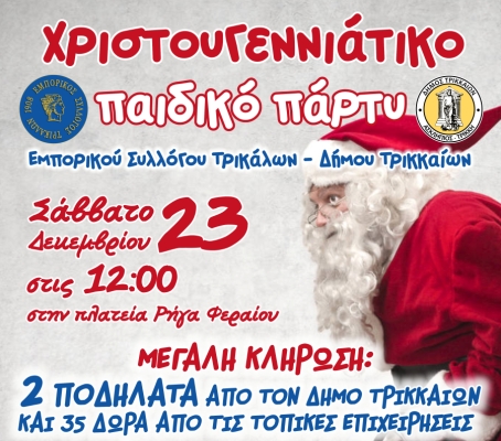 trikaladay.gr / Τοπικά / Μεγάλο χριστουγεννιάτικο παιδικό πάρτι από Δήμο Τρικκαίων – Εμπορικό Σύλλογο Τρικάλων