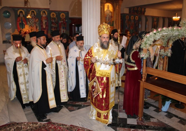 Επίσης ακούστηκαν τα Εγκώμια του Επιταφίου της Παναγίας από τους Ιεροψάλτες και την χορωδία της Ενορίας του Αγίου Νικολάου Πύλης.