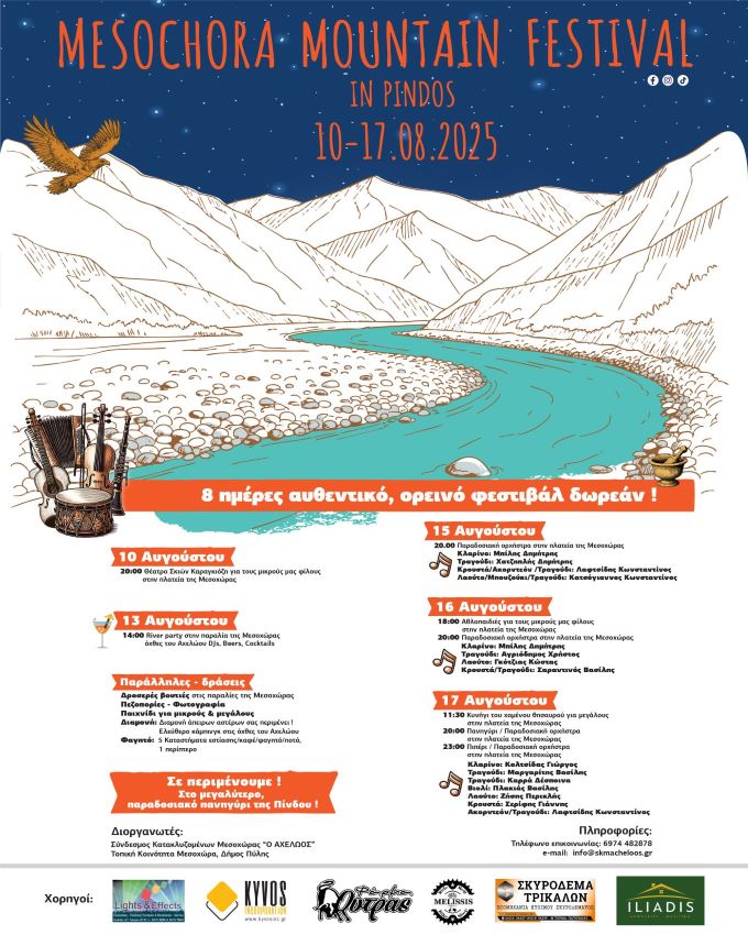Η Μεσοχώρα Τρικάλων υποδέχεται και φέτος, για μία ακόμη χρονιά, το Mesochora Mountain Festival – μια εναλλακτική γιορτή που συνδυάζει τη μουσική, την παράδοση και την ανεπιτήδευτη ζωή του βουνού, σε ένα από τα πιο αυθεντικά φυσικά τοπία της Ελλάδας.
