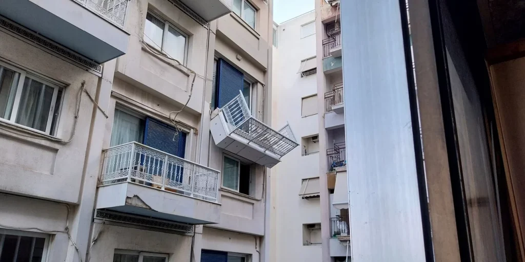 Αποφασίστηκε η προσωρινή διακοπή λειτουργίας του ξενοδοχείου επί της Λ. Συγγρού στη Ν. Σμύρνη, όπου τσιμεντένιο μπαλκόνι έχει σπάσει και αποκολληθεί από την πρόσοψη, το βράδυ της περασμένης Παρασκευής (20/1).