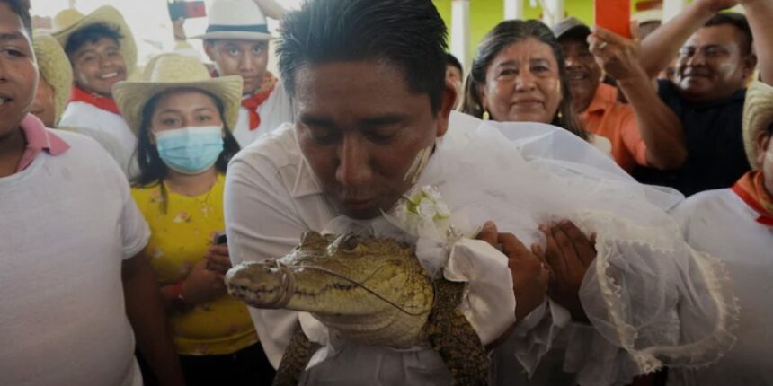 Η παραδοσιακή μουσική έπαιζε δυνατά κι οι καλεσμένοι στον γάμο χόρευαν και φώναζαν στον αυτόχθονα γαμπρό να φιλήσει επιτέλους τη νύφη: ο δήμαρχος του χωριού Σαν Πέδρο Ουαμελούλα του Μεξικό παντρεύτηκε αυτή την εβδομάδα. Έναν… θηλυκό αλιγάτορα.