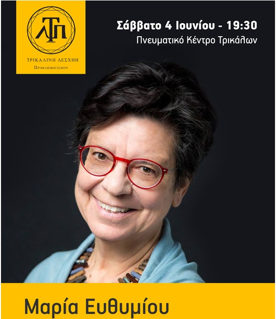 trikaladay.gr / Τοπικά / Μια ενδιαφέρουσα εκδήλωση της Τρικαλινής Λέσχης Προβληματισμού με την ιστορικό Μαρία Ευθυμίου