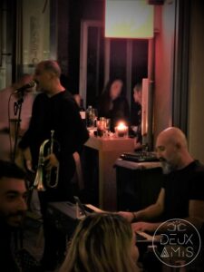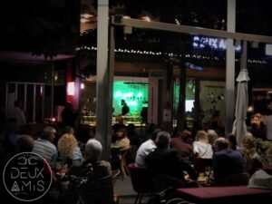 Υπό τους ήχους Jazz κομματιών από τους Jazz Duet (Γιάννης Οικονομίδης & Φίλιππος Κωσταβέλης) όλοι οι παρευρισκόμενοι χαλάρωσαν και διασκέδασαν σε ένα μαγευτικό περιβάλλον! Cocktails, κρασιά και gourmet συνοδευτικά, πάντα με την ανώτερη ποιότητα του Deux Amis, έκαναν το βράδυ του Σαββάτου την απόλυτη γευστική στιγμή της εβδομάδος.