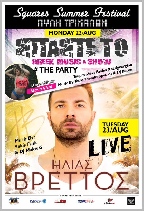 Στις 23 Αυγούστου στις 10 το βράδυ θα εμφανιστεί ο Ηλίας Βρεττός και θα ακολουθήσει μουσική από DJ’S.