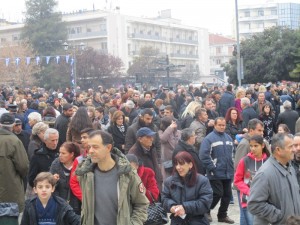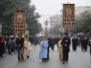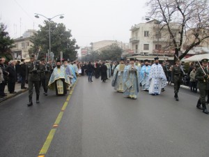 Μετά τη Θεία Λειτουργία στον Μητροπολιτικό Ναό του Αγίου Νικολάου σχηματίστηκε πομπή με τη συνοδεία της Φιλαρμονικής και αγήματος της ΣΜΥ που κατευθύνθηκε στην κεντρική πεζογέφυρα της πόλης.