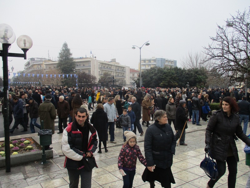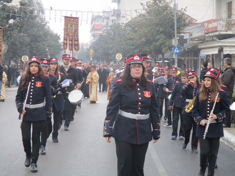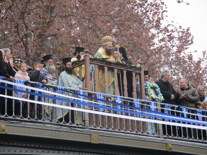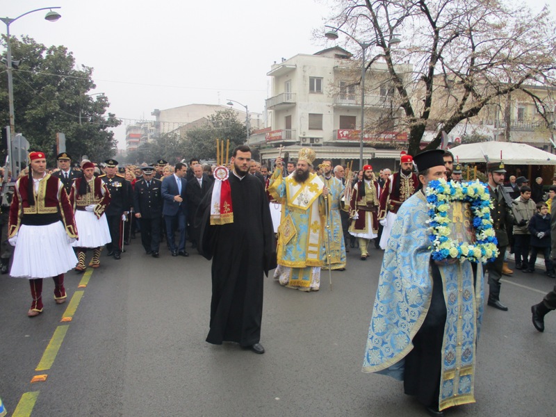 Μετά τη Θεία Λειτουργία στον Μητροπολιτικό Ναό του Αγίου Νικολάου σχηματίστηκε πομπή με τη συνοδεία της Φιλαρμονικής και αγήματος της ΣΜΥ που κατευθύνθηκε στην κεντρική πεζογέφυρα της πόλης.