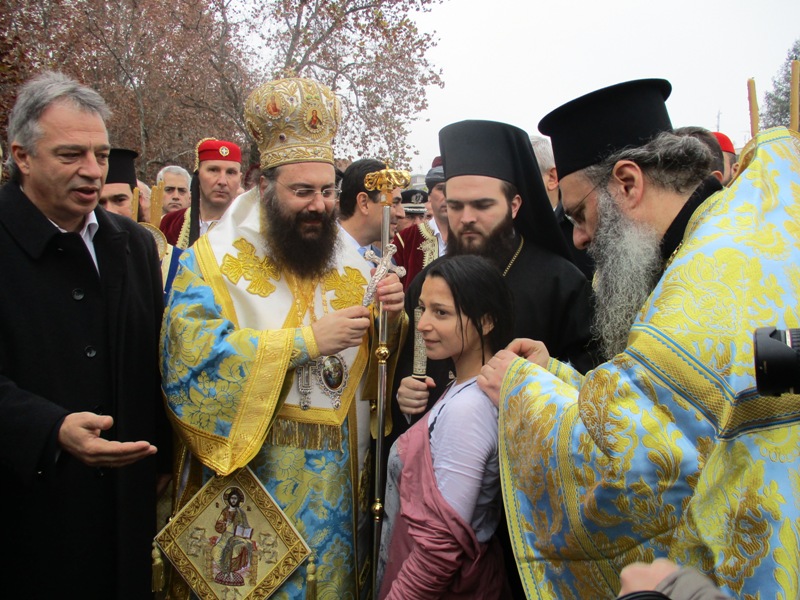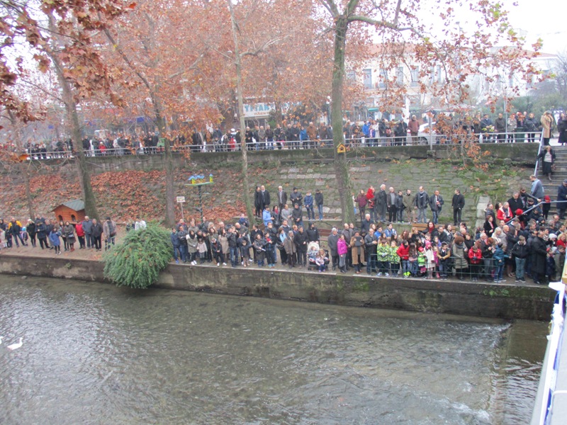 Πάντως είναι η πρώτη φορά στα χρονικά των Τρικάλων που ένα κορίτσι πιάνει τον Σταυρό την ημέρα των Φώτων.
